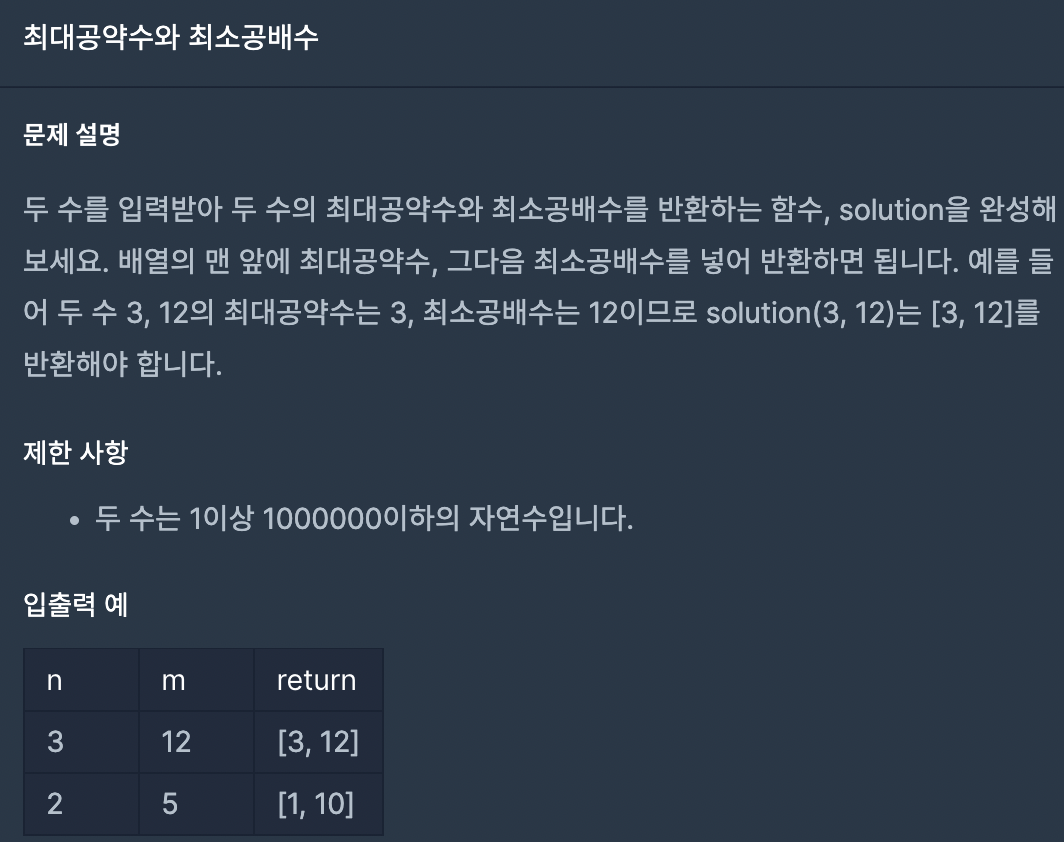 1. 이 문제는 유클리드 호제법으로 풀어야한다. (나는 중첩 함수를 이용해 풀었다.)